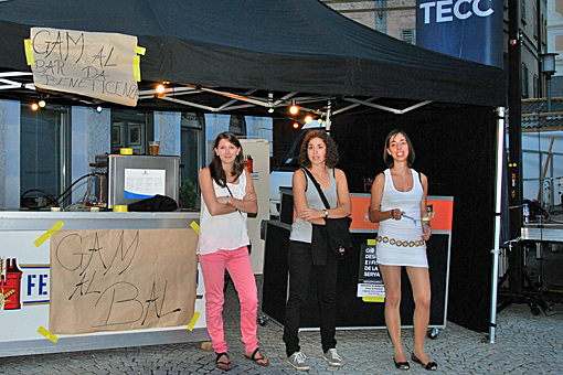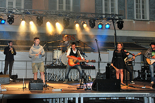 Ad aprire la serata musicale è stato il batterista della band, Lorenzo Bonfanti. Gli ha fatto seguito il cantante Giò, che in onore della festa nazionale elvetica appena passata, ha interpretato – chitarra e voce – il Guglielmo Tell di Davide Van de Sfroos. Quindi via con canzoni originali della band, contenute nel nuovo album Pécc sota ‘l técc, alternate a cover di De André, dei Modena City Ramblers e soprattutto di Davide Van de Sfroos. Il tutto con un ritmo serrato, che quasi non lasciava tempo agli applausi.