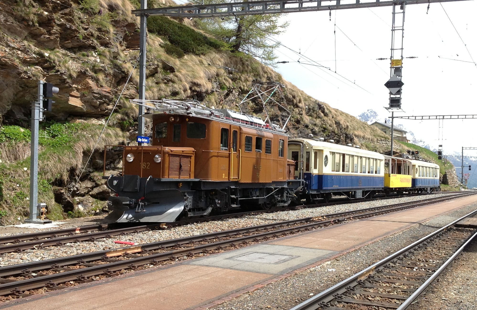 Il coccodrillo del Bernina (Loc 182), regolarmente in servizio fino al 1977, durante un viaggio nostalgico in sosta ad Alp Grüm.
