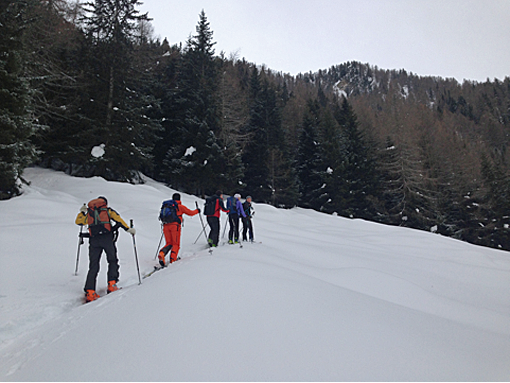 Gli annunci alla gita di programma sul Piz d’Agnel erano 10, causa maltempo e condizioni sfavorevoli il gruppo si è ridotto a 6 partecipanti. Subito si decide di cambiare itinerario optando per il Pilinghel, Laras Vecc per evitare il lungo viaggio di trasferta. Spostamento in macchina fino a Selva da dove ci siamo incamminati verso Braita per poi proseguire verso il Pilinghel. Dopo una breve pausa, aver tirato gli scarponi e levato le pelli di foca dagli sci, uno alla volta siamo scesi lungo il pendio ancora inviolato che porta alla Val da Caral. Le condizioni della neve erano perfette, 30 cm di neve polverosa.