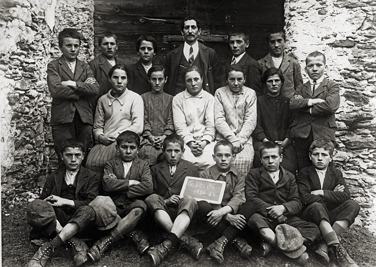 Allievi della 4a classe (pari al 7° e 8° anno) della scuola di S. Carlo (annate 1916-1917) con il maestro Giovanni Giuliani senior nell’anno scolastico 1930-1931.