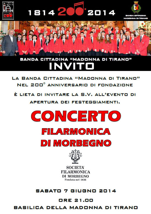 Archivio Concerto Filarmonica Morbegno Di nn - 4 Giugno 2014 0 11 Sabato 7 giugno 2014 200° Anniversario Fondazione Banda Cittadina “Madonna di Tirano”. Andrea De Campo Consigliere della Banda Cittadina Madonna di Tirano