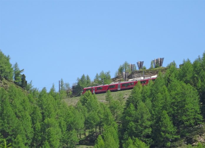 In zona Li Vaschi, dopo la stazione di Alp Grüm in direzione Ospizio Bernina, sono stati posti dei pannelli frangivento a forma di alberi rovesciati che servono per deviare l’accumulo di neve nei pressi del tracciato ferroviario.