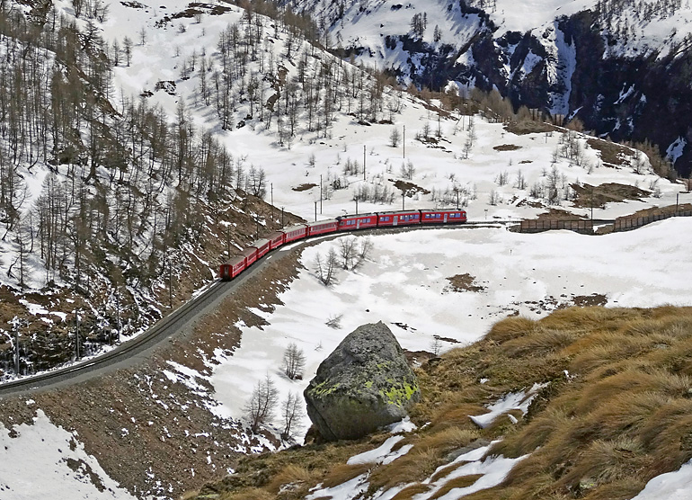 Scioglimento dell’ultima neve Di Giorgio Murbach - 24 Luglio 2014 0 63 Passaggio del treno in zona Li Vaschi tra Ospizio Bernina e Alp Grüm durante lo scioglimento dell’ultima neve nella primavera del 2014. Foto: © ilbernina