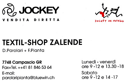 Daphne & il team Jockey ringraziano la clientela valposchiavina e italiana, così come i Pusc’ciavin in Bulgia per la fedeltà dimostrata e augurano loro delle Serene Feste.