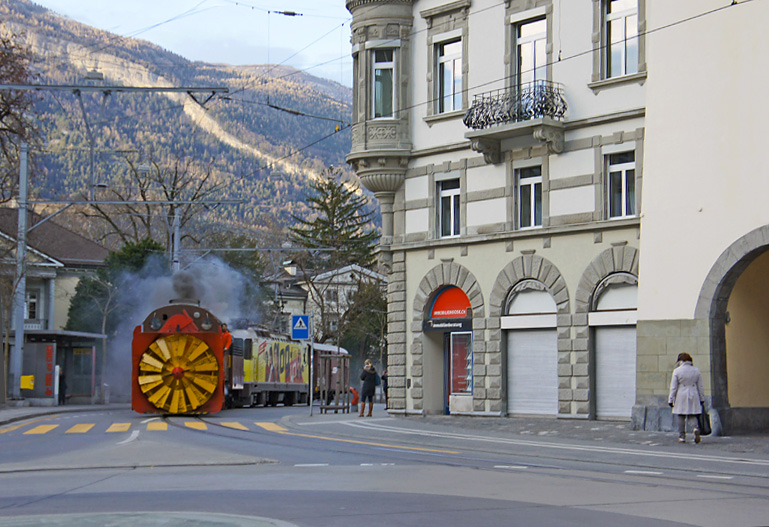 Per festeggiare al meglio i 100 anni della tratta ferroviaria Coira – Arosa, i responsabili della Ferrovia Retica non hanno voluto rinunciare al mitico spazzaneve rotativo a vapore che normalmente circola sulla tratta del Bernina. Una vera attrazione lungo tutto il percorso da Pontresina ad Arosa.