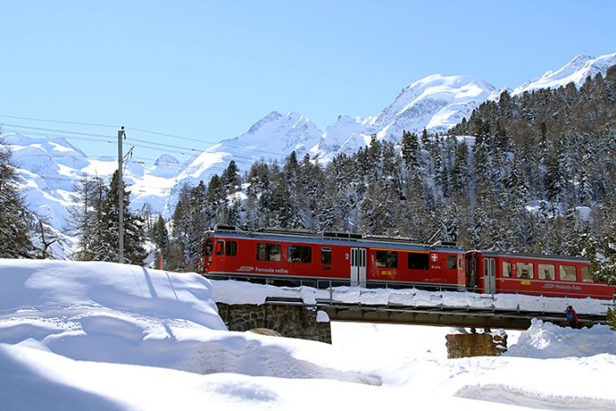 Il viaggio in treno sulla linea del Bernina offre una vista eccezionale sul gruppo del Bernina con i suoi ghiacciai. Il Piz Bernina, con i suoi 4049 m la cima più alta dei Grigioni, ha dato il nome alla ferrovia, nata a vocazione turistica. I ghiacciai sono in continuo ritiro dall’epoca della “piccola glaciazione” (1850 ca.). Nel 1908 il ghiacciaio del Morteratsch arrivava a ca. 500 m dai binari: negli ultimi 100 anni si è ritirato di ca. 2 km.