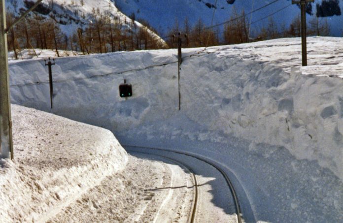 Transitando in questi giorni lungo la Ferrovia del Bernina s’incontra ancora neve. Sicuramente però non così tanta come durante l’inverno 2000- 2001, quando all’Ospizio Bernina si sono misurati ben oltre 24 metri di neve fresca.