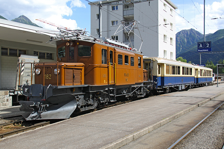 Due carrozze dell’Alpine Classic Pullman Express sono transitate a metà giugno 2015 per la Valposchiavo trainate dall’infaticabile Coccodrillo (Ge 4/4 182). Un viaggio esclusivo al quale hanno partecipato viaggiatori da tutto il mondo: America, Canada, Australia, Inghilterra. Un viaggio iniziato a Basilea con L’Orient Express, con tappe a Coira, St. Moritz, proseguito con il Bernina Pullman Express fino a Tirano e terminato a Zermatt con il Glacier Pullman Express.