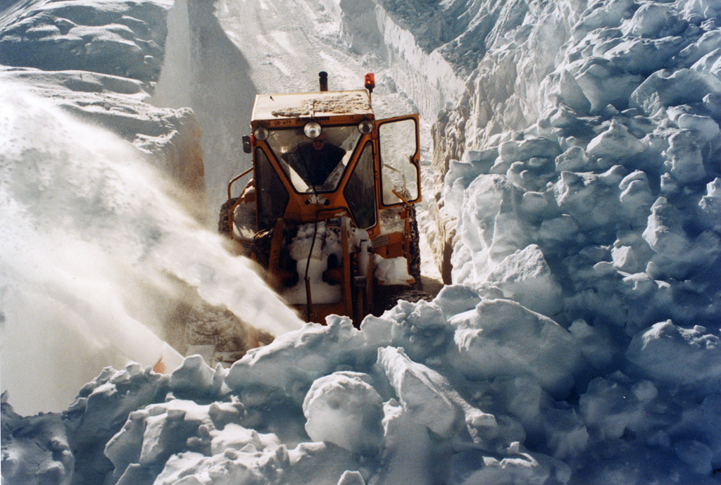 I grossi album di fotografie, sfogliati durante il racconto, continuano intanto ad esprimere emozioni, a raccontare momenti unici, immortalati per l’eternità. Sì, perché tutto non si può raccontare, non è necessario, basta osservare quelle immagini che traboccano di neve e di vento e già si capisce. Si comprende facilmente che le zone più problematiche sono il “Baraccone” e “Arlas”, ma non è una novità, i valposchiavini già lo sanno. Renzi racconta di quella volta, nell’aprile del 1986, in cui il passo è stato chiuso una settimana intera causa il vento da sud. Terribile quel vento da sud; ad Arlas si erano accumulate pareti di neve alte ben 12-13 metri. Impossibile passare. C’erano macchine intrappolate, Dio solo sa quante. L’inverno con più precipitazioni nevose è stato invece il 2000/2001: 28 metri cumulati, neve e ancora neve, fino a primavera inoltrata. Per fortuna poco vento, l’assenza del quale aveva causato tutta quella coltre bianca. Renzi ricorda un giorno che si era lavorato dalle 13 alle 18 per poter liberare una sola corsia; si trattava di rendere possibile il transito alle automobili in attesa, in quanto il Bernina era, in quel preciso momento, l’unico valico che poteva venir aperto, anche solo in modo parziale.