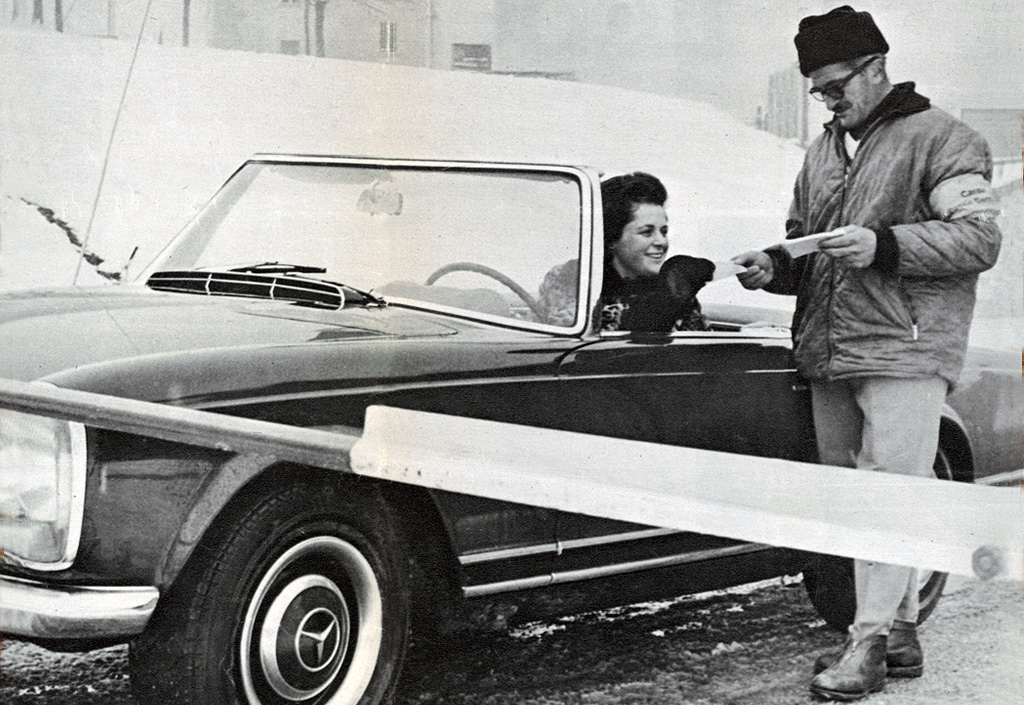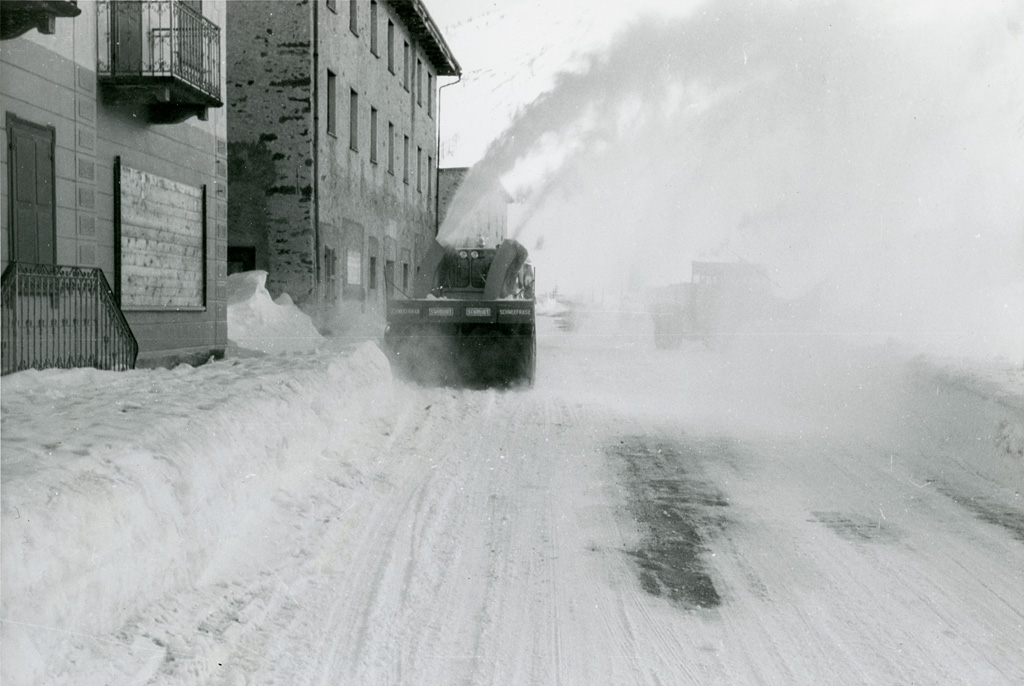 Il transito sul Passo del Bernina durante l'inverno era soggetto al pagamento di un contributo che permetteva di coprire le spese di apertura, 1966