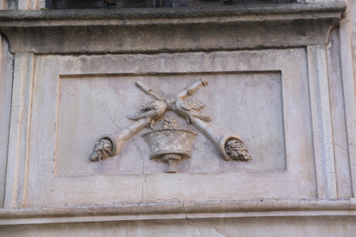 “I rilievi in stucco che ornano le finestre del piano nobile sottolineano la signorilità dell’edificio. Vi si scorgono allegorie della musica, classiche per un’epoca in cui, dopo la nobiltà, anche la borghesia scopriva il gusto per la musica profana”.