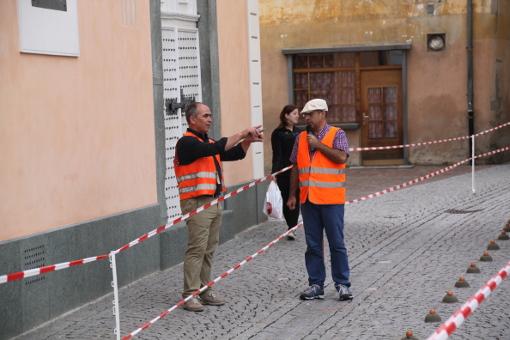 Il cronista Peter e Orlando Lardi controllano il percorso spiegando la gara al pubblico.