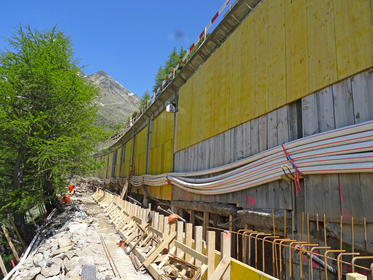 Subito dopo la stazione ferroviaria di Alp Grüm, in direzione Ospizio Bernina, sono in corso dei lavori di risanamento della galleria di protezione. Nei prossimi anni si procederà pure con le altre gallerie, costruite negli anni 50 per aumentare la sicurezza del transito sulla linea del Bernina in particolare durante il periodo invernale.