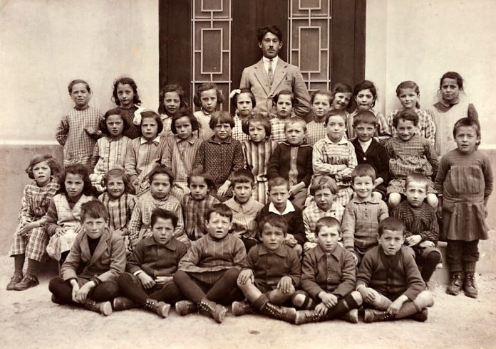 Allievi della 1a classe della scuola elementare di Poschiavo nel vecchio monastero (annata 1923) con il maestro Ugo Tuena nell’anno scolastico 1930-1931.