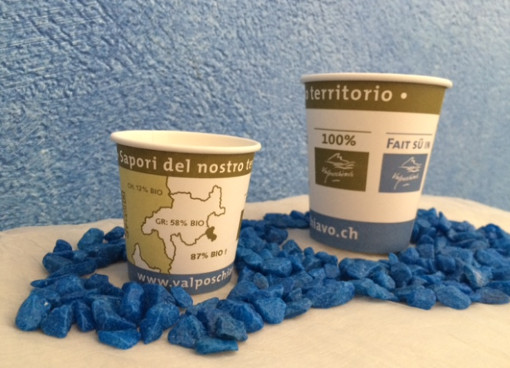 L’idea di sostituire i classici bicchieri di plastica con quelli di carta biodegradabile raffiguranti i loghi “100% Valposchiavo” e “Fait sü in Valposchiavo” è nata nella primavera scorsa da un’intuizione di Gianluca Balzarolo della ditta Balzarolo SA. L’Ente Turistico Valposchiavo, proprietario del marchio, ha sposato volentieri l’idea ponendo come unica condizione che la grafica fosse realizzata secondo il proprio corporate design.