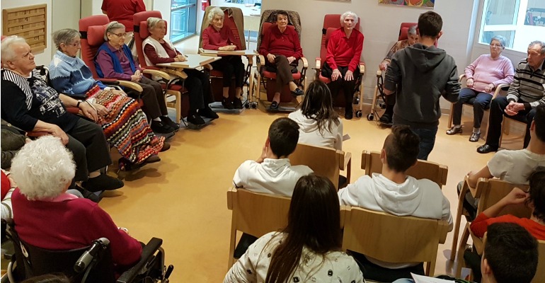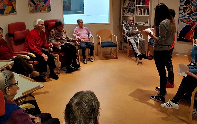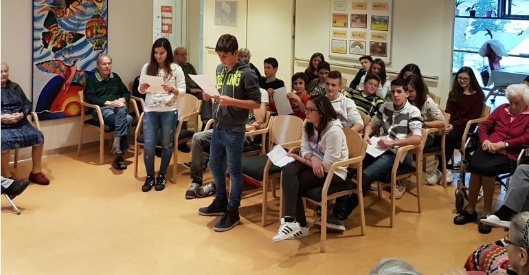 Con le coppie ci siamo messi davanti a loro e abbiamo letto le nostre storie. Nonostante le nostre voci un po’ basse, gli anziani hanno avuto molto piacere di sentire le nostre favole.