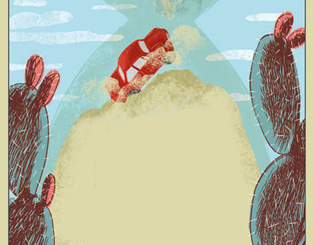 strada che segue la costa a precipizio sul mare, un’auto che corre