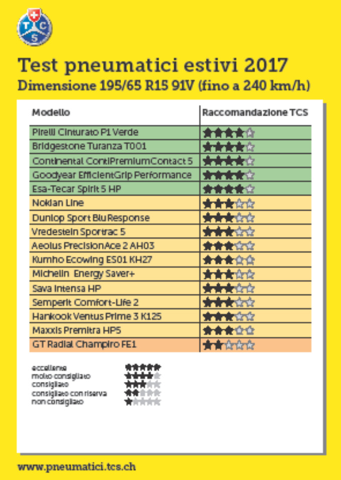 I risultati e le valutazioni dettagliate di tutti i pneumatici sottoposti al test possono essere consultati all’indirizzo internet www.pneumatici.tcs.ch.