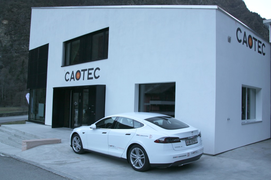 Fondata la Caotec nel 2012 e acquisito lo stabile ex ditta Andreoletti, lo stesso viene trasformato, fra gli anni 2013 e 2015, in un complesso ultramoderno, idealmente funzionale per i nuovi fabbisogni e, quel che più conta, energeticamente indipendente. Enormi finestre superisolanti lungo tutta la facciata ovest, con apporto passivo del sole, infondono luce agli uffici riducendo nel contempo al minimo l’uso del riscaldamento, grazie anche ad un’isolazione spessa 32 cm. di lana di roccia con la quale viene avvolto il fabbricato. Il tetto ricoperto di pannelli solari ed uffici energeticamente autarchici, per una sovrapproduzione energetica del 6%, che dovrebbe ulteriormente potenziarsi con l’arrivo quest’anno di un impianto eolico dell’altezza di 10m, completano i connotati del piccolo prototipo di centrale elettrica.