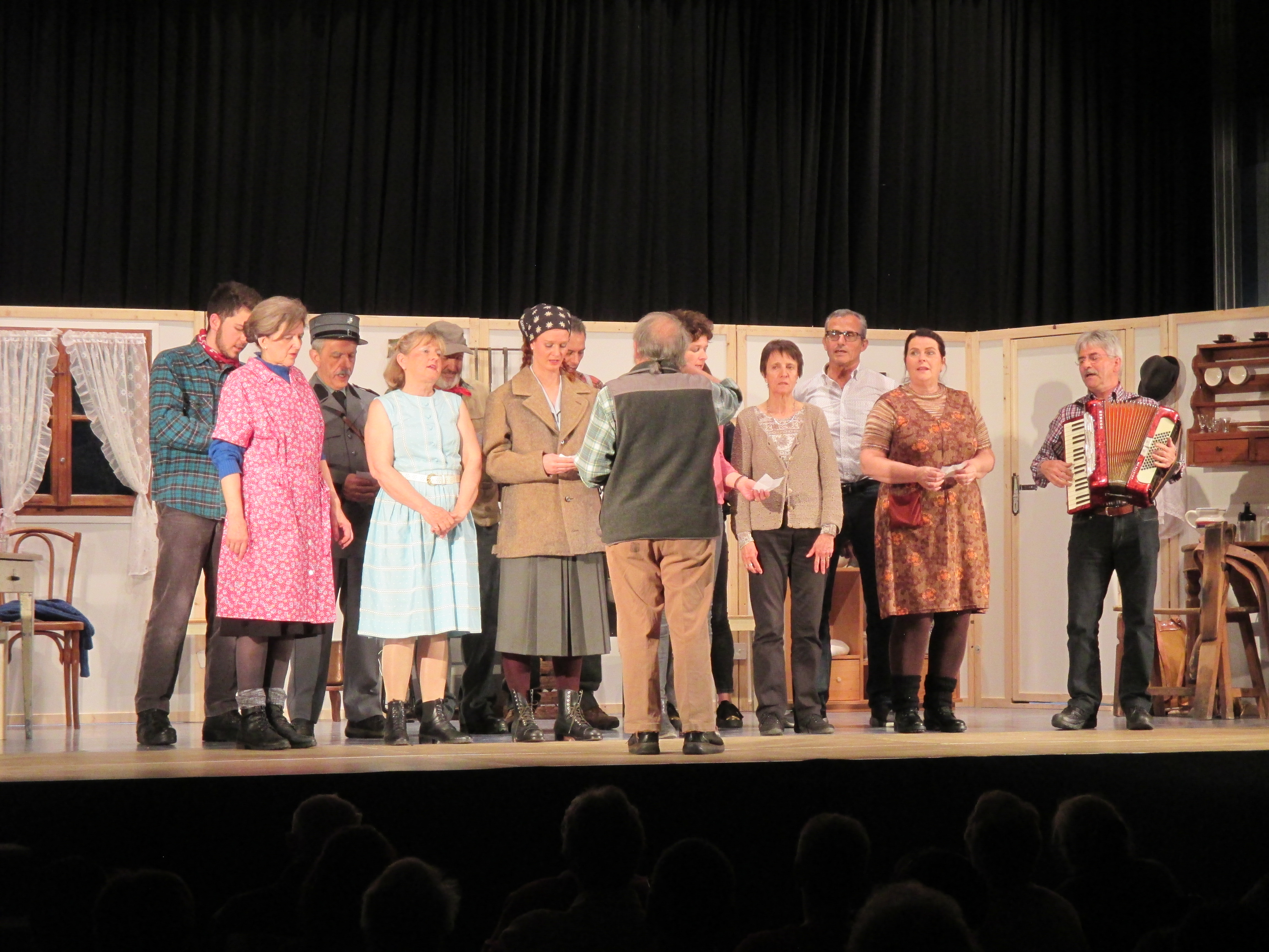 Si è concluso domenica pomeriggio, presso le scuole di S. Maria a Poschiavo, il tour de force del gruppo teatrale dei pus’ciavin di Coira. Lo spettacolo messo in scena questa primavera è stato “Ris e rost par li nozzi da Rusina”, una commedia dialettale in due atti di Massimo Lardi, a cui il regista e attore di lunga data, Antonio Godenzi, ha aggiunto unicamente una comparsa, quella di barba Toni (da lui stesso impersonato), che intende essere la sua ultima apparizione dopo una lunga carriera amatoriale dedicata alla apprezzatissima compagine coirense. La scelta dei costumi e di una schietta scenografia, tipica dei teatri popolari dialettali, è avvenuta nel solco della tradizione, mentre il ritmo è stato di buona levatura e la dizione dialettale di tutti gli attori non ha deluso le aspettative. Degna di nota, fra l’altro, la presenza in scena di due bravi attori di “seconda generazione”, la cui parlata non si è per nulla distinta dal resto del gruppo.