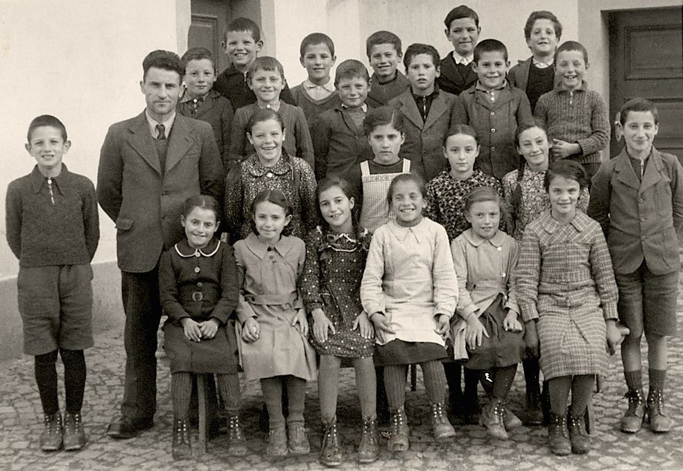 Allievi di 3a e 4a classe (annate 1932-1933) delle scuole di S. Carlo con il maestro Pietro Lanfranchi.