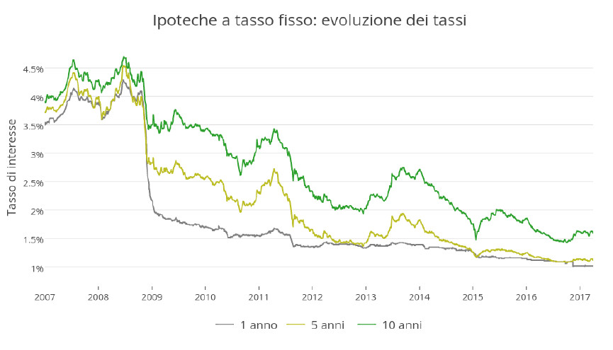 Nel primo trimestre 2017 i tassi d’interesse delle ipoteche a tasso fisso sono rimasti pressoché immutati in Svizzera. Dopo i minimi storici dello scorso autunno, sembra adesso presentarsi una nuova staticità. Elezioni alle porte in Francia, Brexit e politica economica ancora vaga degli Stati Uniti generano comunque insicurezza.
