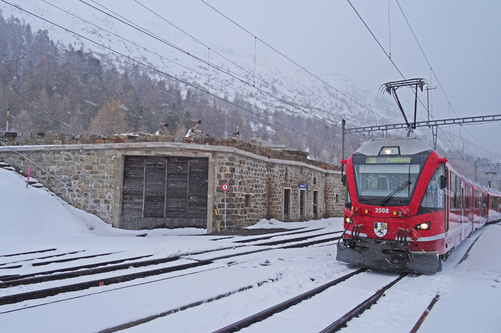 La stazione di Bernina Suot, o Bernina Bassa (2046 m s.l.m.), punto della Ferrovia del Bernina divenuto tristemente famoso per la valanga della Marianna. All’interno della rimessa c’è una piattaforma utilizzata per girare lo spazzaneve rotativo a vapore, analoga a quella presente all’Ospizio Bernina.