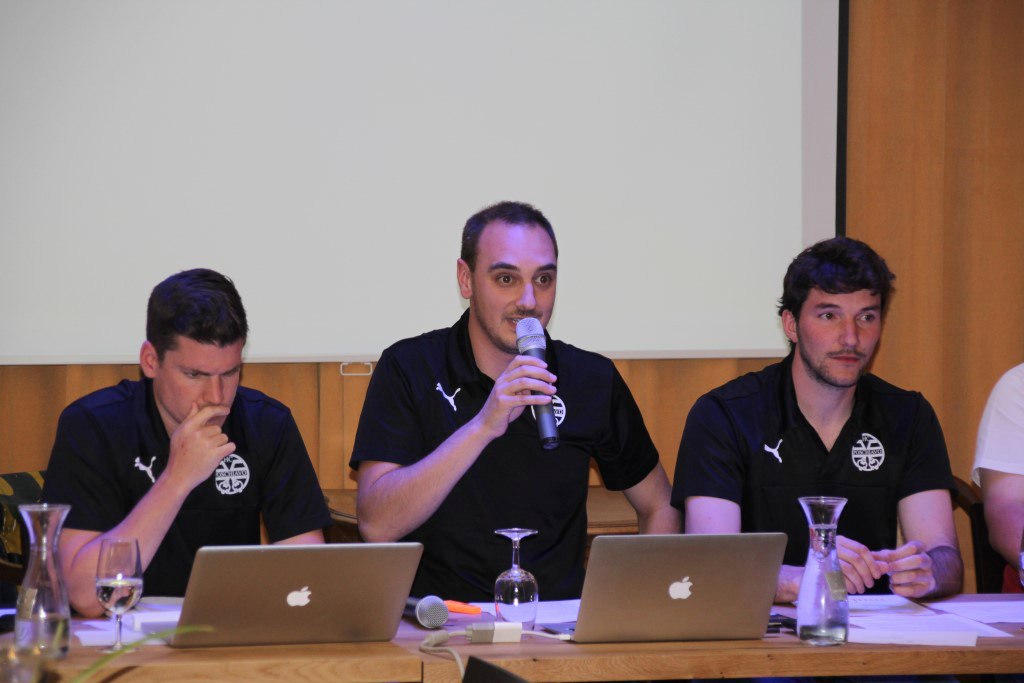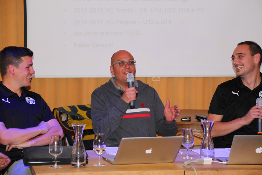 A margine della serata, come raccontato nel precedente articolo, c’è stata la presentazione del nuovo allenatore Fabio Zampol, che si è poi intrattenuto con gli intervenuti per presentarsi e spiegare la sua filosofia sportiva (sudore e sangue per la prima squadra, ha detto ironicamente, ma non troppo).