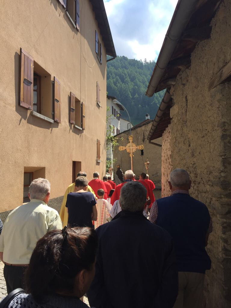 Non manca il Sindaco del comune di Brusio, tra i molti presenti. La scelta e combinazione di testi nuovi con canzoni antiche, eseguite dal Coro di Chiesa di Viano, fa da cornice alle parole dei testi religiosi ed ai pensieri espressi dal prete nella Sua omelia. Rinunciare ai campanilismi ed essere più altruisti: questo il succo della riflessione.