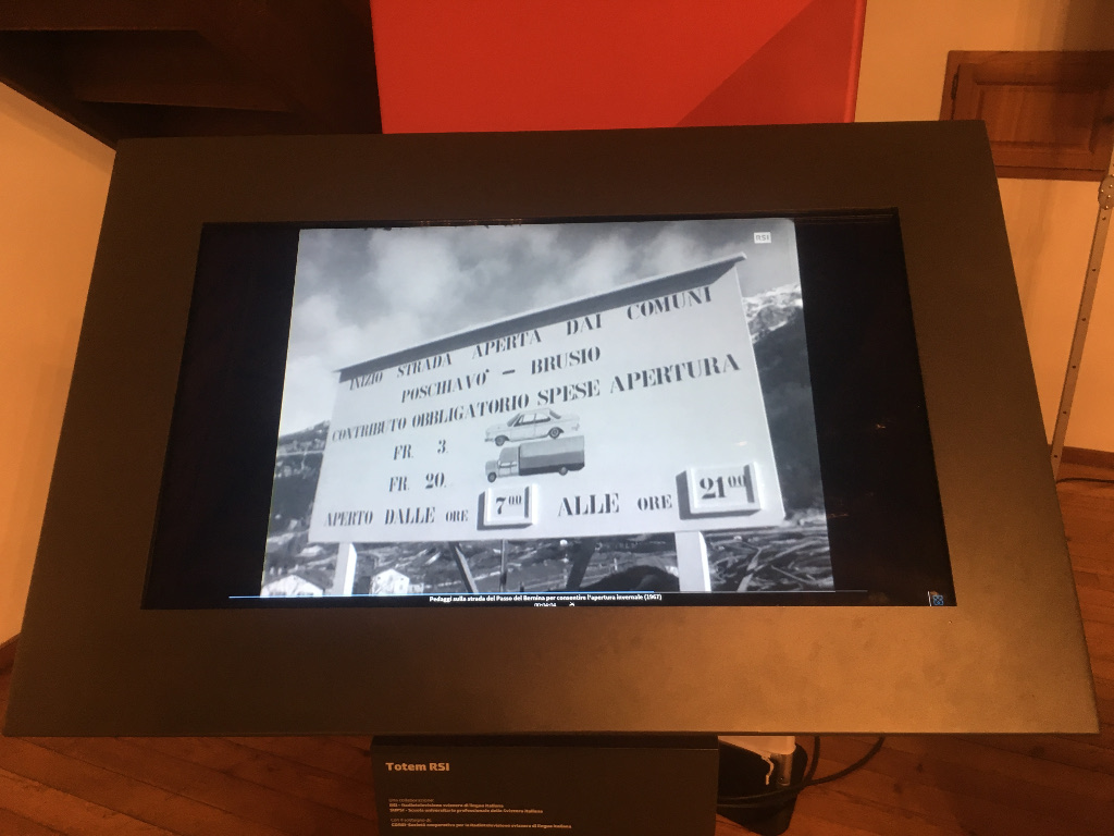 Domenica 11 giugno è stato presentato a Poschiavo il Totem RSI, uno schermo tattile attraverso il quale è possibile accedere a vari contenuti multimediali che ripercorrono la storia della nostra valle. Come detto da Maurizio Canetta, direttore della RSI, i Totem sono un modo per ridare alla popolazione tutti i contributi, le storie e le interviste che la televisione ha realizzato e raccolto negli ultimi decenni.