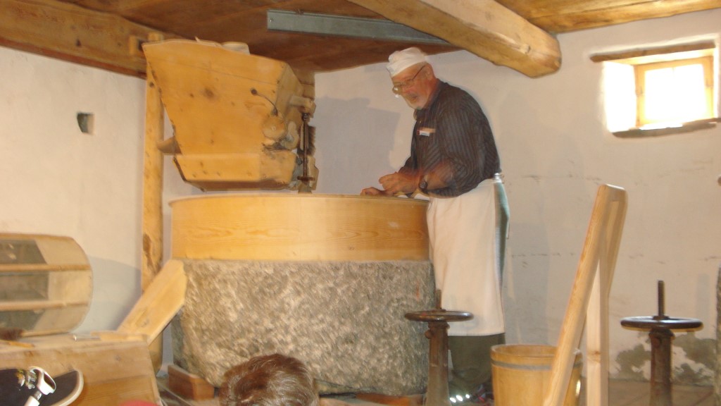 In un attimo siamo in Casa Tomè. Ci aspettano emozioni e esperienze nuove. La casa racconta di 4 sorelle, vissute in centro Poschiavo in un mondo a sé, dove si ricamava e si cuciva, si usciva a servizio per ritornare a ritirarsi nel bozzolo di stanze oscure, nel tempore della stalla, a godere del calore della famiglia. Racconta un tempo passato e noi l’abbiamo ascoltato con il cuore, ammirati, incuriositi, quasi increduli. E subito il fascino di un cibo antico, cucinato con pochi ingredienti, tra cui quella farina morbida e scura prodotta al mulino, ci ha catturati!