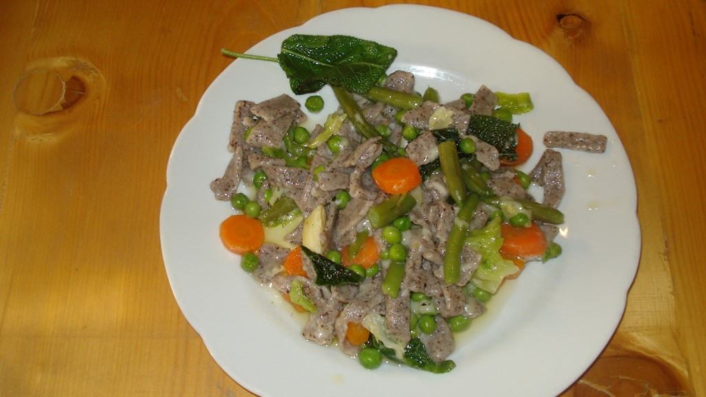 Abbiamo messo le mani in pasta e raschiato verdure e grazie a Valeria e a Barbara, perfette padrone di casa, attente e pazienti, ne sono uscite due casseruole di fumanti pizzoccheri, una con le verdure e una senza, per soddisfare tutti i palati!