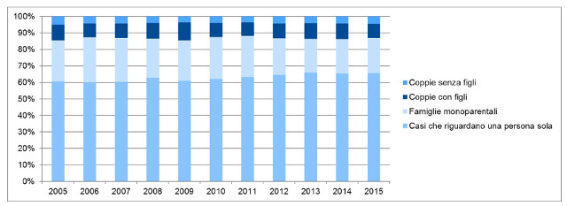 Più casi che riguardano una persona sola e casi di famiglie monoparentali