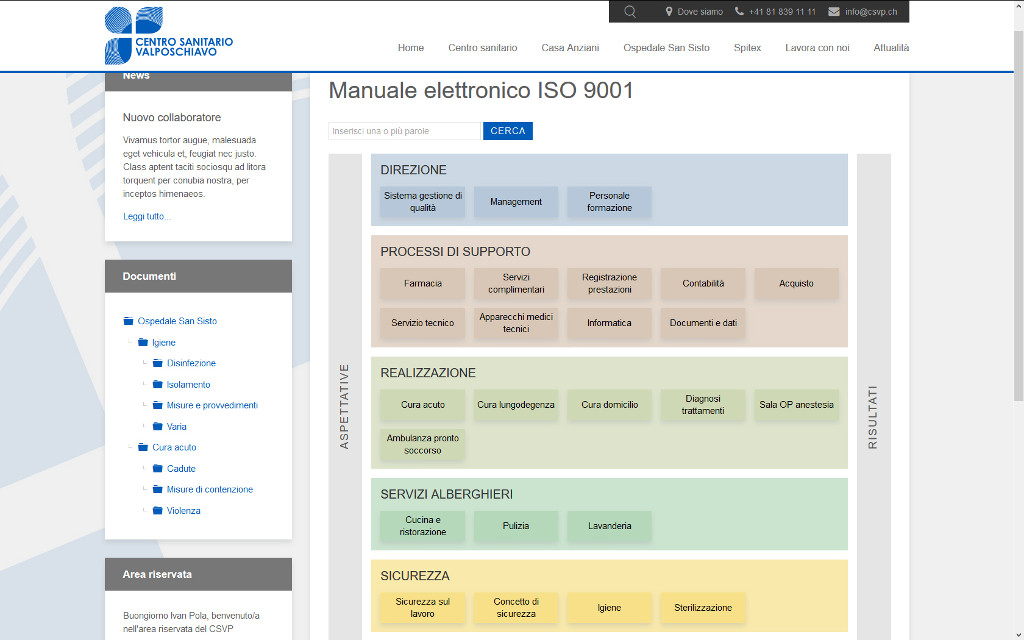 L’altra novità molto importante è la presenza del nuovo manuale elettronico ISO 9001:2015, che è integrato nell’area riservata ai collaboratori del Centro sanitario. “In questo modo – spiega Pola – ogni collaboratore può accedervi, in alcuni casi anche da casa, e consultare o scaricare la modulistica di cui necessita”.
