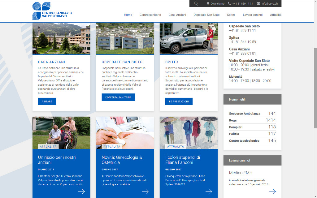 L’incarico per la realizzazione del nuovo portale è stato affidato alla ditta ecomunicare.ch. “Sulla proposta che ci è pervenuta – afferma Pola – abbiamo poi costruito i contenuti e le sezioni del sito; successivamente mi è stato insegnato come gestire gli aggiornamenti, cosa che già facevo con il vecchio sito dell’Ospedale San Sisto”.