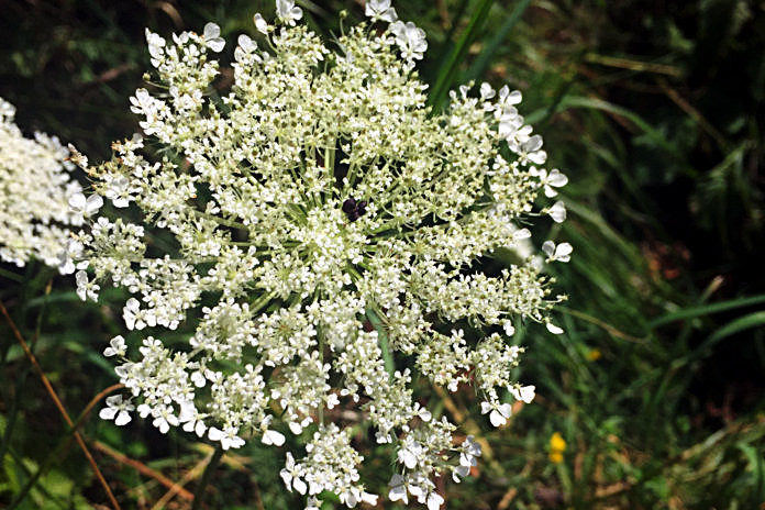 Questa pianta, che fa parte della famiglia delle Apiaceae, cresce nei prati ed è facilmente riconoscibile grazie alla caratteristica forma ad ombrello che assumono i fiori. La pianta può raggiungere l’altezza di un metro e fiorisce da giugno ad ottobre; i fiori sono di colore bianco. Un altro segno di riconoscimento consiste nel fatto che spesso, al centro dell’ombrello di fiori, si può osservare un fiore di colore nero-porpora, utilizzato dalla pianta per attirare gli insetti.