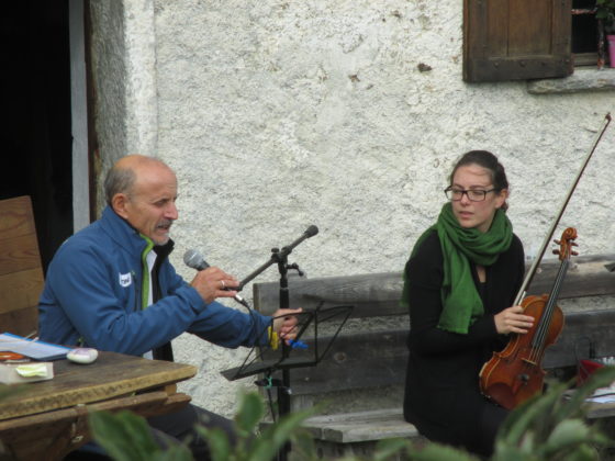Nel pomeriggio di sabato scorso, davanti a un cospicuo pubblico radunatosi nei pressi dell’antico ospizio di San Romerio, Giuseppe Cederna ha narrato le vicende dell’eroe greco Odisseo (Ulisse). Ad accompagnarlo, con appropriate musiche, vi era la giovane e brava violinista Chiara Varenna.