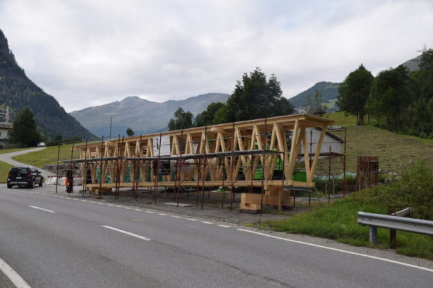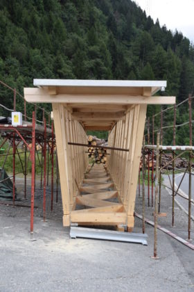 Riguardo a quest’ultima, essa è in fase di assemblamento presso il piazzale del legname a “Li Austrini”, a San Carlo. “L’opera finita – ha aggiunto il Cancelliere Nicola Passini – verrà poi elitrasportata con un elicottero Kamov e posata sugli zoccoli di calcestruzzo preparati in precedenza”. La passerella peserà circa 4’200 chili ed è realizzata dalla ditta Zaco Sagl, la quale si occuperà anche del trasporto che dovrebbe avvenire in una data compresa tra il 27 e il 29 agosto.