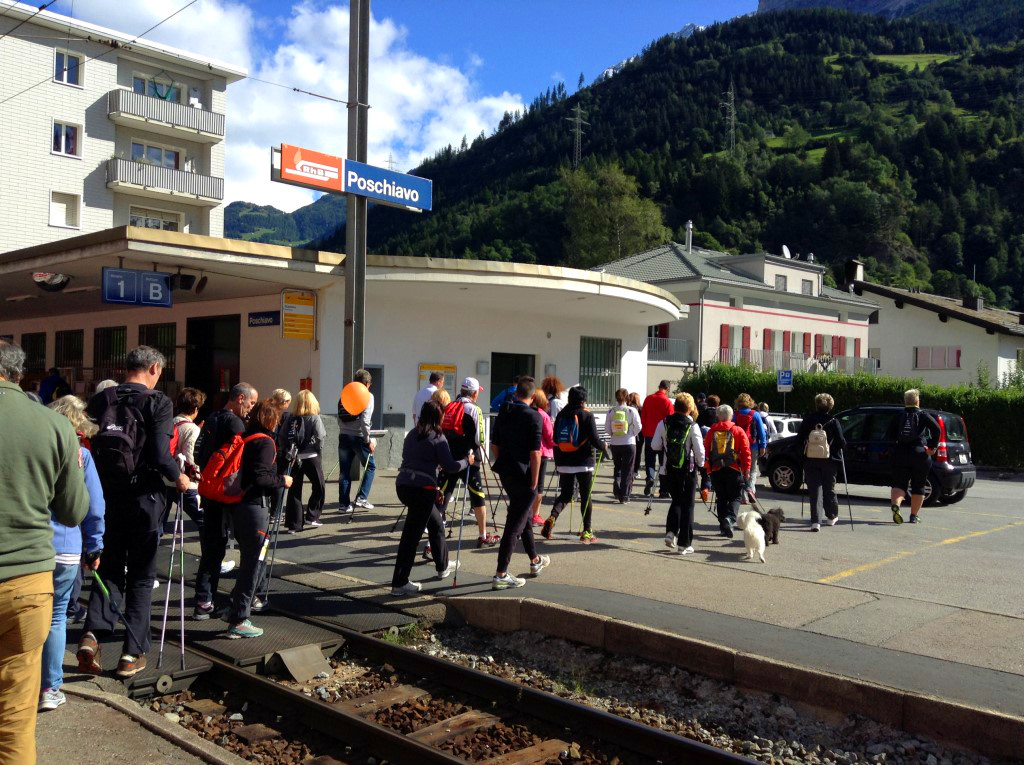 Ecco, a me è accaduto domenica scorsa quando, con il gruppo di appassionati di cammino e nordic iscritti alla Walking Valtellina, la manifestazione tiranese organizzata da Anwv, l’associazione guidata dal dinamico Mario Chiapparini, sono scesa dal Regio e sin dai primi passi in stazione ho capito che avrei vissuto un’esperienza nuova. Molti gli italiani che raggiungevano Poschiavo per la prima volta e che ai bastoncini da nordic hanno ben presto sostituito la macchina fotografica: il ponte sul Poschiavino, la Chiesa di San Vittore Mauro con l’Oratorio Sant’Anna e l’Ossario, il Vecchio Monastero, il quartiere spagnolo, non c’è stato angolo del percorso nel Borgo che non sia stato fotografato con entusiasmo. Uno scrigno di storia e cultura alpina che sa svelarsi con discrezione agli occhi di chi lo raggiunge e di chi lo vive, uno scrigno di passioni che non delude e si rinnova nella tradizione.