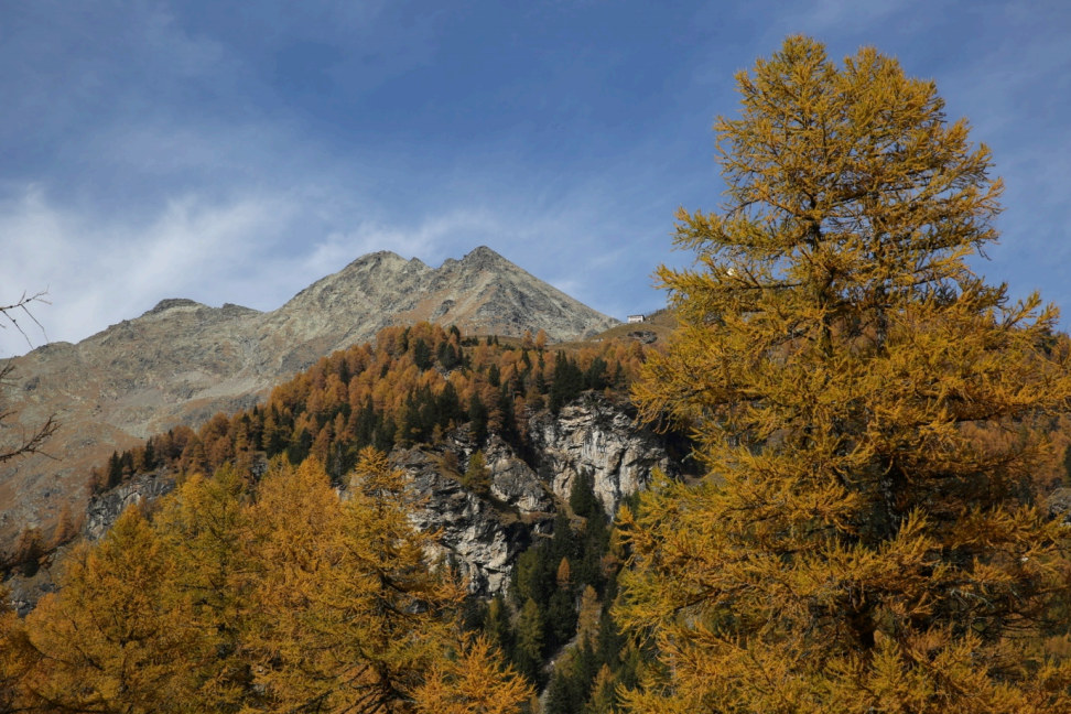 Cavaglia forma un bacino con versanti alti e in parte rocciosi come un grande anfiteatro. Il rumore della zipline, i gridi e gli urli a voce alta delle persone che si buttano ad alta velocità da Alp Grüm a Cavagliola sono udibili dappertutto e pure l’eco – fino al ristorante Belvedere, nella Val Pila e fino al ghiacciaio di Palü…