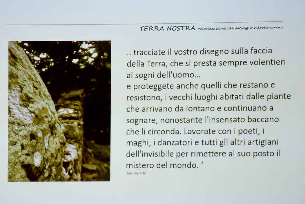 Valorizzare il territorio valposchiavino, ecco in sintesi perché è nata “TERRA NOSTRA”, l’ultima in ordine di tempo tra le tante associazioni attive in valle. Convinti che si possa fare di più per recuperare il paesaggio culturale e rurale, un gruppo di giovani provenienti dai due comuni ha deciso di fondare un’associazione che intende raggiungere i propri obiettivi attraverso la sensibilizzazione della popolazione con informazioni e manifestazioni pubbliche, oltre a seguire e realizzare progetti.