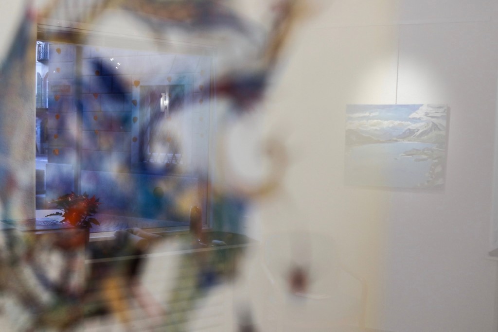 E così è stato. Più il crepuscolo avanzava, più le opere esposte in Galleria trovavano spazio all’esterno, tanto che per un attimo in piazza è apparso il Cervino ed eleganti donne hanno ammiccato ai passanti. Come braccia protese sulla via di passaggio questo effetto di rifrazione ha portato all’interno persone le cui chiacchiere mi hanno accompagnata all’orario di chiusura.