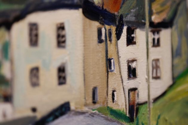 Quel giorno avevo già la chiave in mano, occorreva aprire la porta facendo attenzione a non svegliare nessuno e così è stato, almeno in principio. Passare qualche istante nella Galleria PGI di Poschiavo, sola, mentre le opere d’arte appese si muovevano al lento ritmo del respiro dei giusti è stato meraviglioso. Son di quelle cose che ti fanno sentire lì, o forse anche solo sentire, non so.