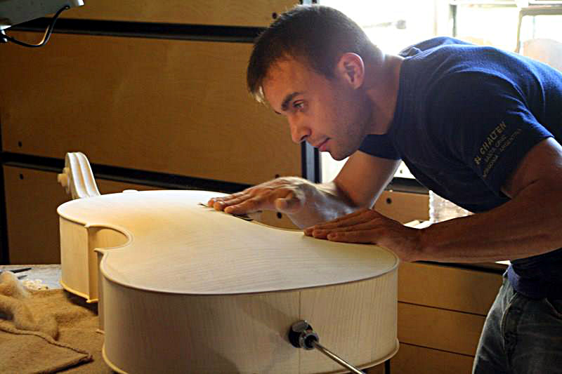 Il vero e proprio approccio alla liuteria però è avvenuto quando ha iniziato a studiare presso la scuola Bottega di Parma. Una scuola molto più pratica, rispetto ad altre in Italia, dove la teoria la si apprende lavorando direttamente al banco di lavoro.