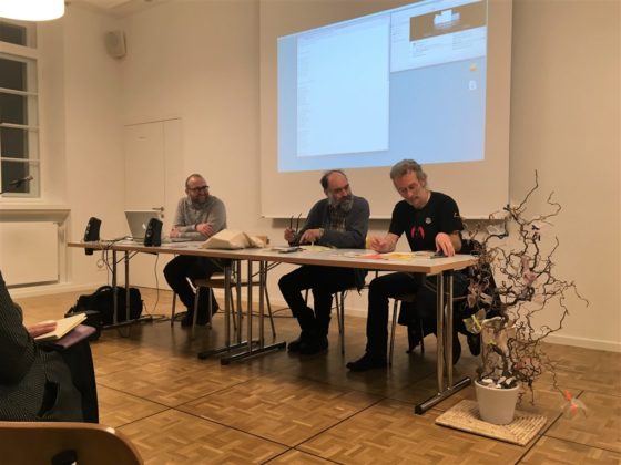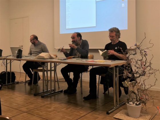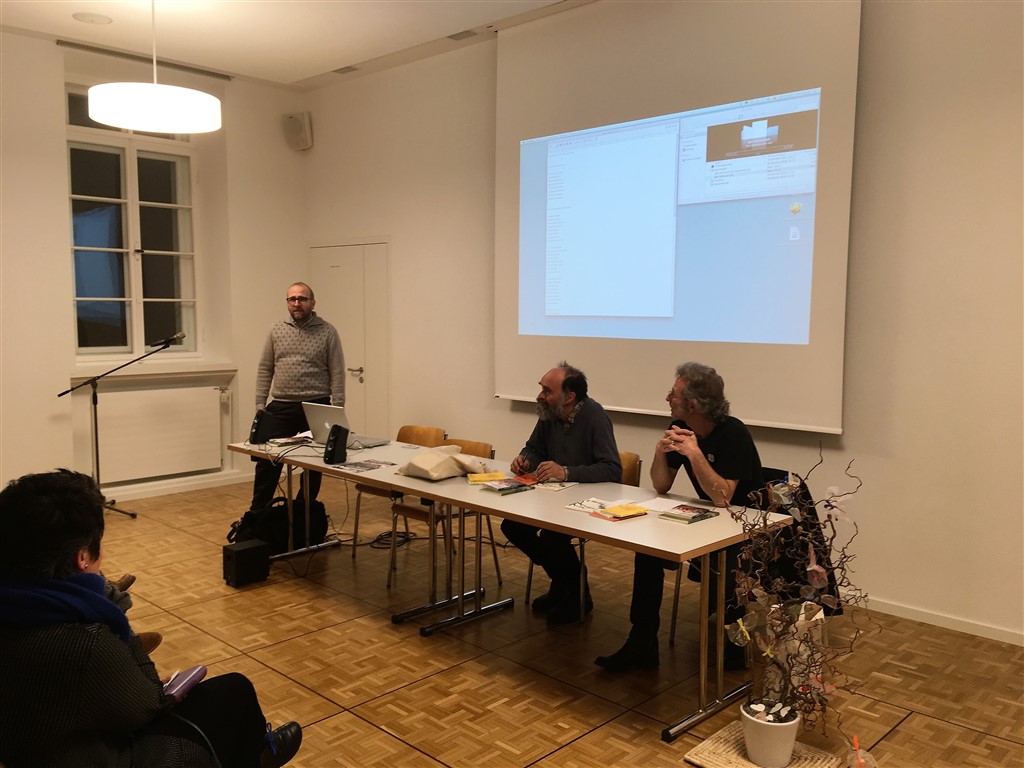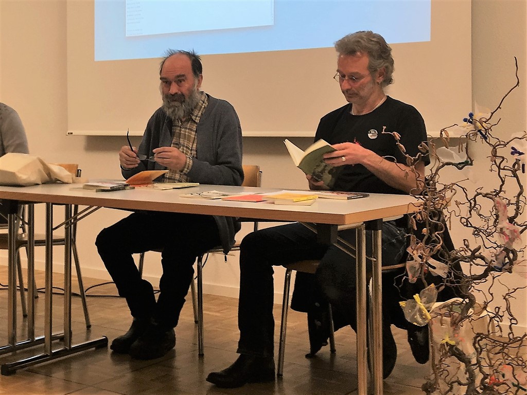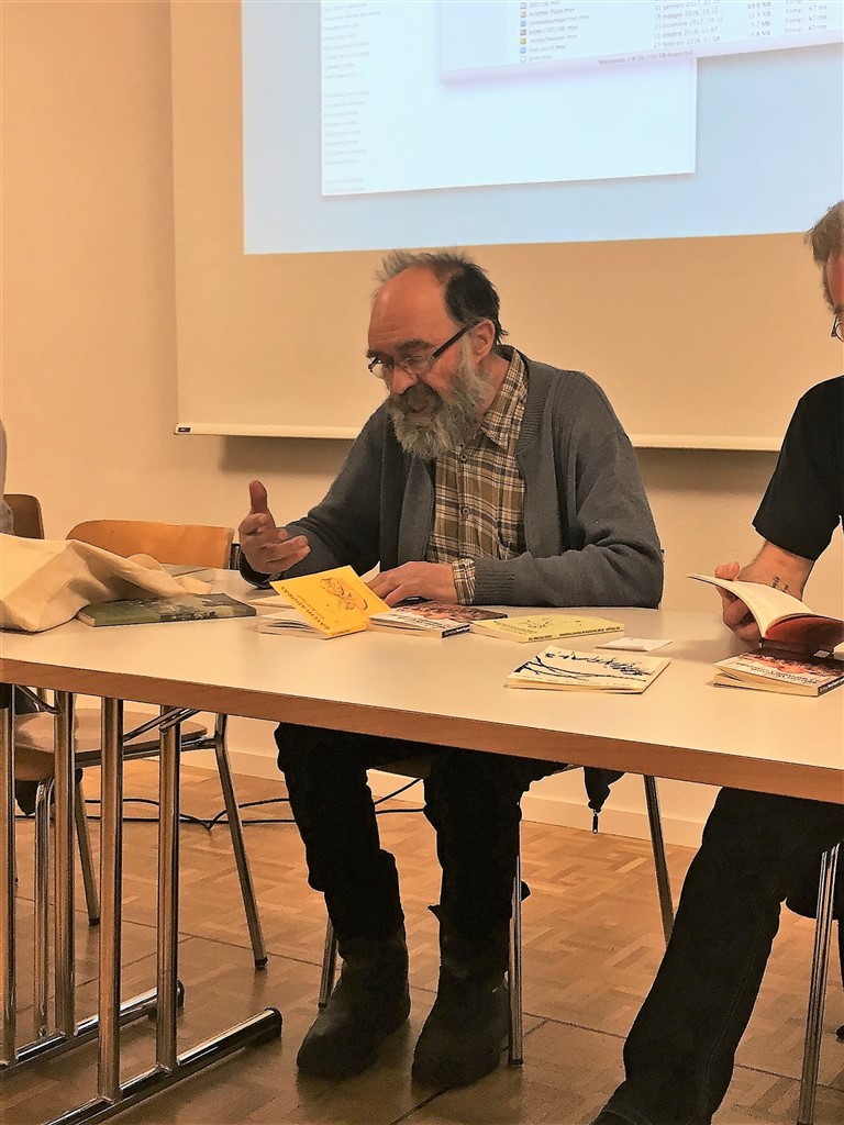 È stato un incontro all’insegna della creatività e della cordialità quello avvenuto venerdì scorso, 2 febbraio, nell’aula della Comunità evangelica di Poschiavo, con lo scrittore pontresinese Göri Klainguti e con il traduttore di alcune sue opere in italiano, Walter Rosselli. L’incontro, promosso dalla Pgi Valposchiavo con il patrocinio di “Pro Elvetia” e “Promozione della cultura del Comune di Poschiavo”, ha destato grande interesse e allegria fra l’esiguo pubblico intervenuto.
