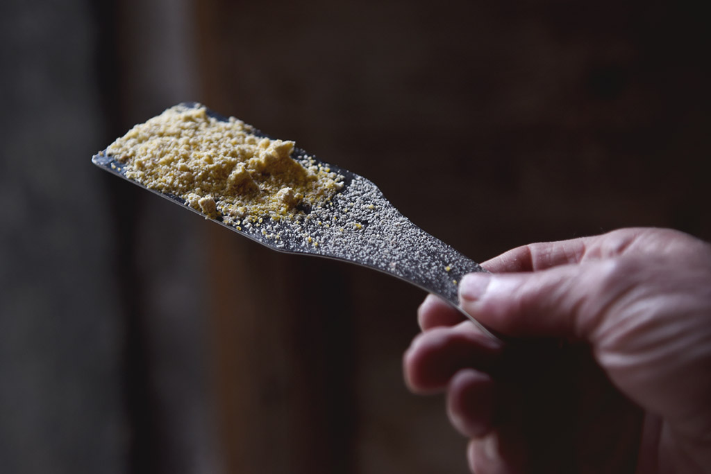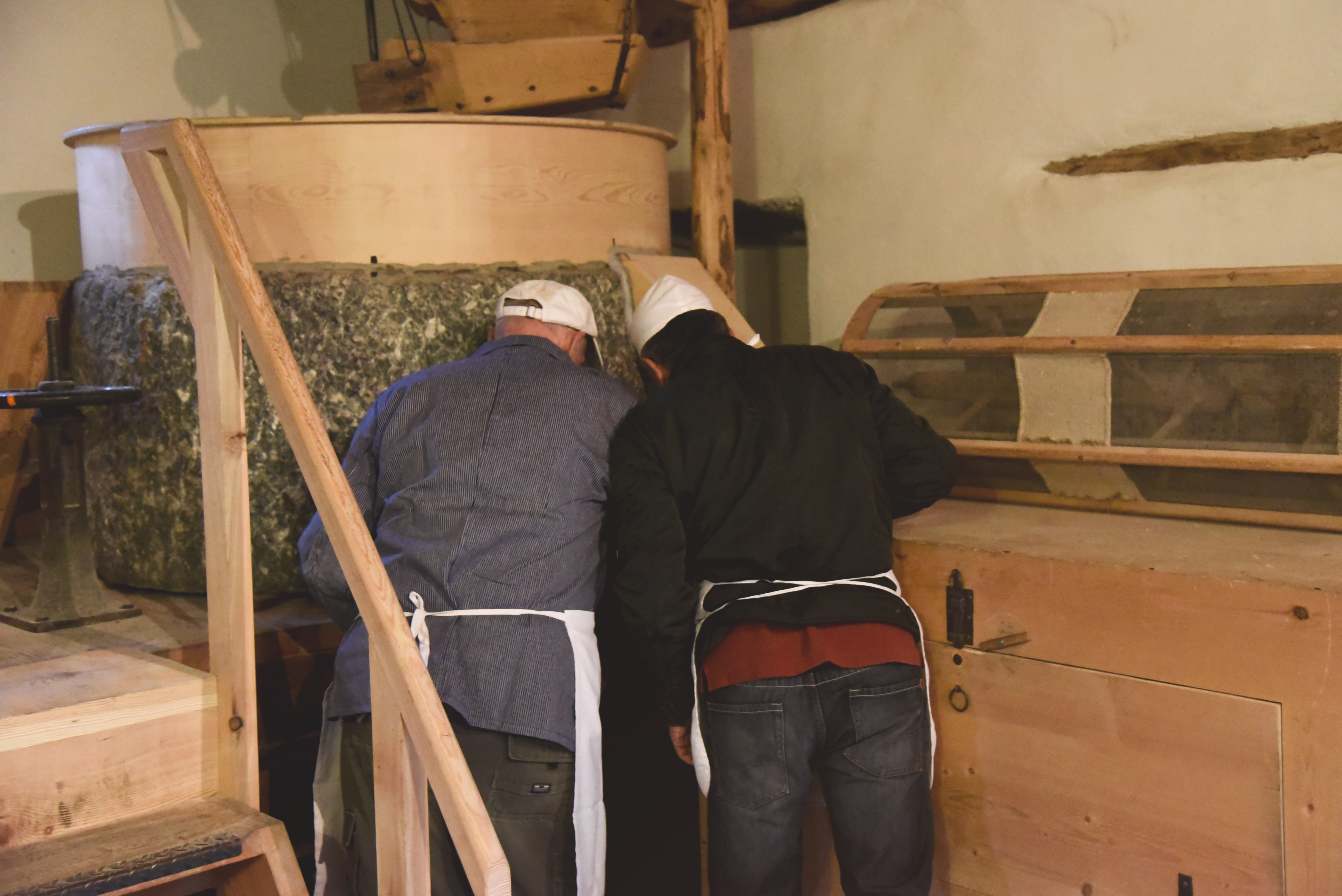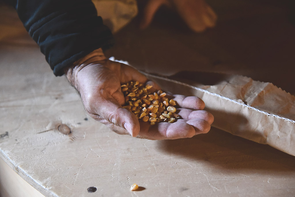 Da ottobre a marzo le macine del vecchio mulino restano ferme. Il ghiaccio che si forma tra le pale, infatti, potrebbe arrecare danni all’impianto e dunque l’acqua che solitamente va al mulino viene deviata nel fiume. Al fine di evitare difficoltà nella fornitura, i mugnai preparano a fine autunno riserve di mais e frumento che di solito bastano a coprire le richieste fino a marzo inoltrato. Quest’anno la domanda di farina di mais 100% Valposchiavo è tuttavia stata maggiore alle aspettative.