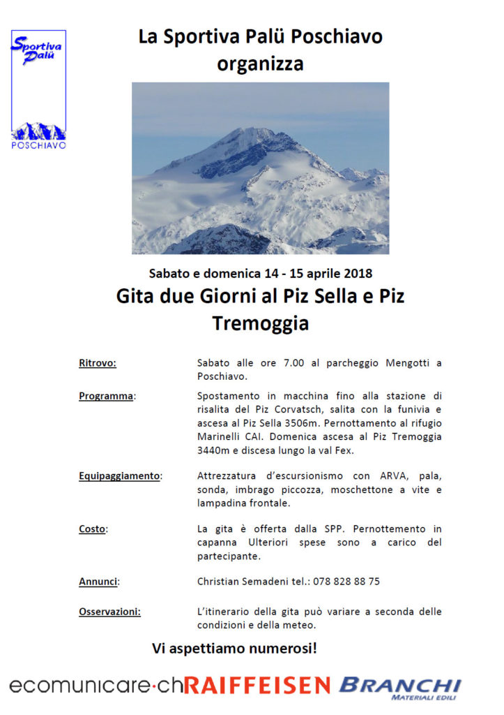 Senza categoria Gita al Piz Sella e Piz Tremoggia 14 e 15 aprile Di Sportiva Palü Poschiavo - 4 Aprile 2018 0 167