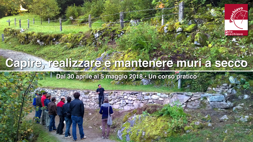 Il corso pratico rivolto a muratori, apprendisti, agricoltori, liberi professionisti si terrà da lunedì, 30 aprile a sabato, 5 maggio 2018, ore 08:00–17:00 e prevede la realizzazione di un muro a secco sul territorio del Comune di Brusio con intercalate lezioni teoriche e visite a strutture realizzate in muratura a secco.