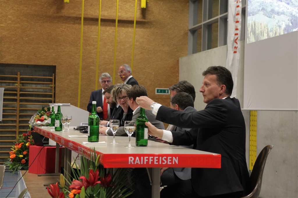 Prendendo la parola, il presidente del Consiglio d’amministrazione ha voluto innanzitutto simbolicamente segnalare, a conferma della riuscita unione delle banche valligiane negli scorsi anni, la presenza in sala di Mario Giuliani (1930), per 50 anni membro del Consiglio d’amministrazione della Banca Raiffeisen San Carlo (di cui 20 rivestiti quale presidente) e di Plinio Bontognali (1936), per 25 anni membro del Consiglio di amministrazione della Cassa Raiffeisen Prada e poi Banca Raiffeisen Li Curt.