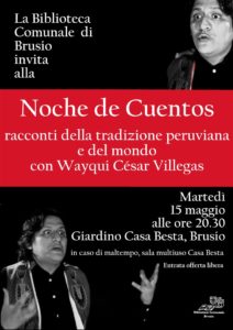 Dopo aver visitato la biblio.ludo.teca La Sorgente di Poschiavo lo scorso dicembre, el Wayqui torna in Valposchiavo con il suo vasto repertorio di cuentos. La serata di martedì 15 maggio, nel giardino di Casa Besta, sarà allietata da storie antiche di miti peruviani, leggende dalla foresta amazzonica e favole della tradizione del racconto orale da tutto il mondo.